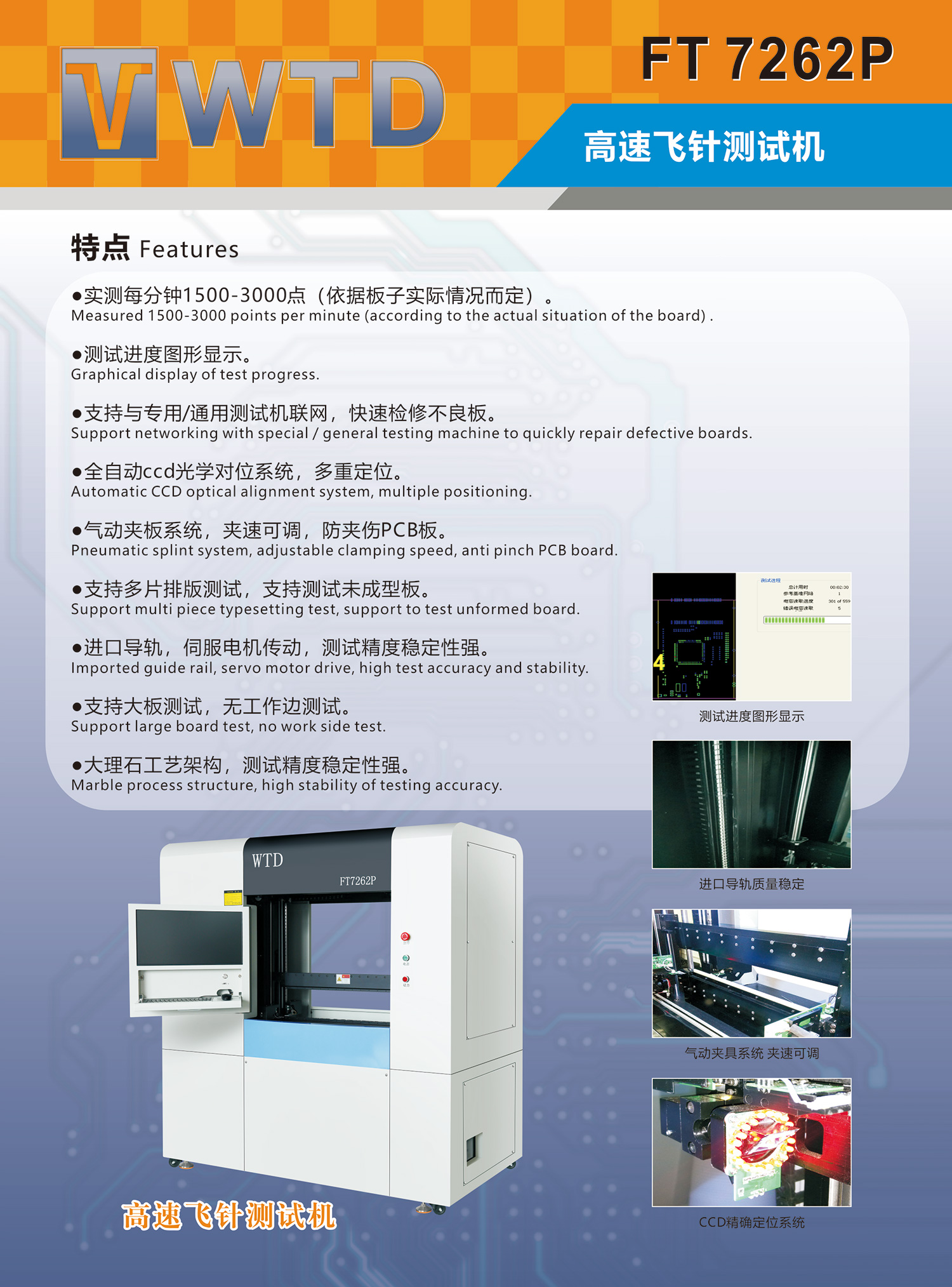 这款FT7262P 高速皮带飞针测试机,前后配备高清CCD光学对位系统,实现多重精准定位;采用进口加宽皮带传动、进口导轨与伺服电机驱动,搭配大理石工艺架构,保障优异的测试精度与长期稳定运行。气动夹板力度可调,可有效避免PCB夹伤,同时支持大板测试与无工作边测试,性能可靠、适用性强。